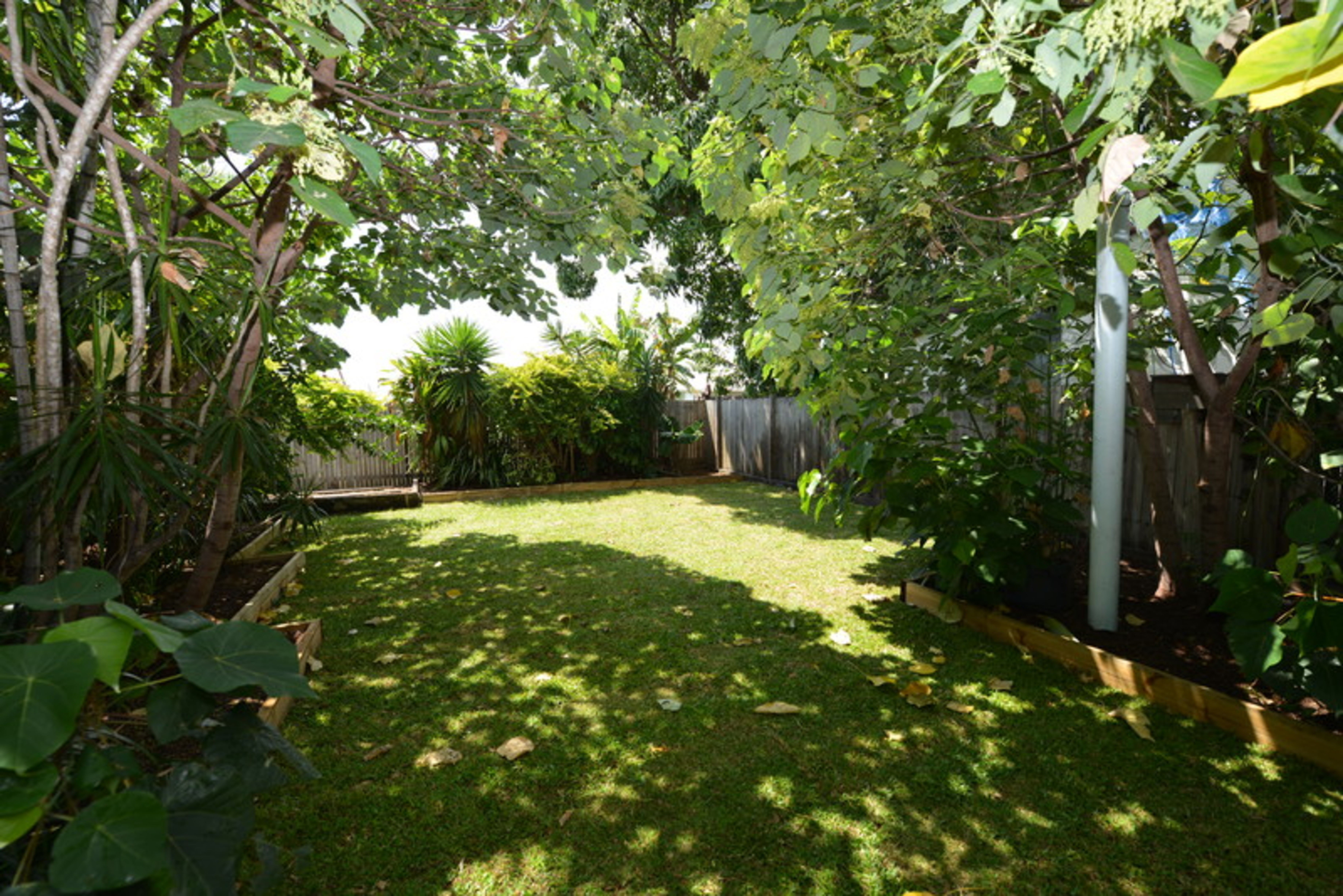 The back yard is amazing, offering privacy and serenity.