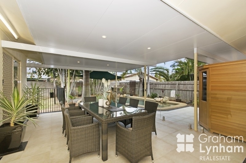 - The gorgeous entertainment area overlooks the in-ground pool with glass panel fencing and has a great privacy aspect.