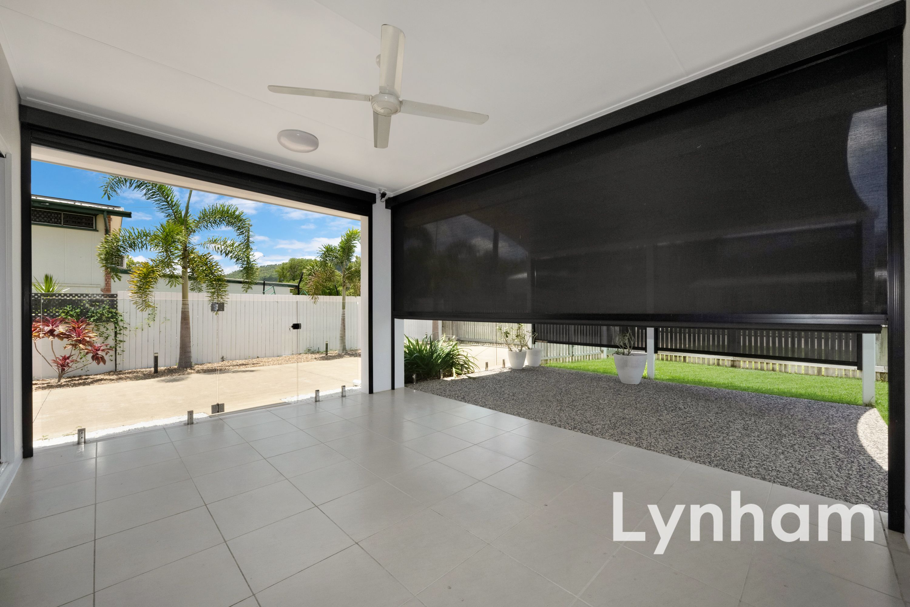 Front patio with electronic roller blind