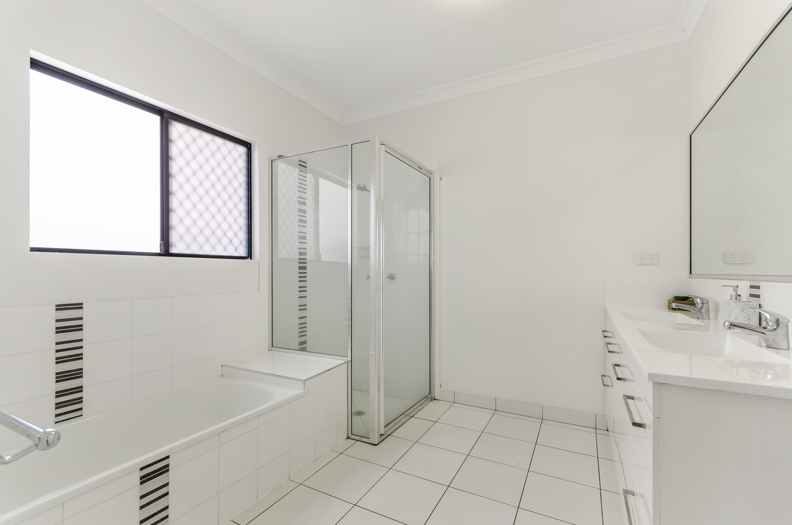 The main bathroom is central to the other bedrooms and has a plunge bath and separate shower.
