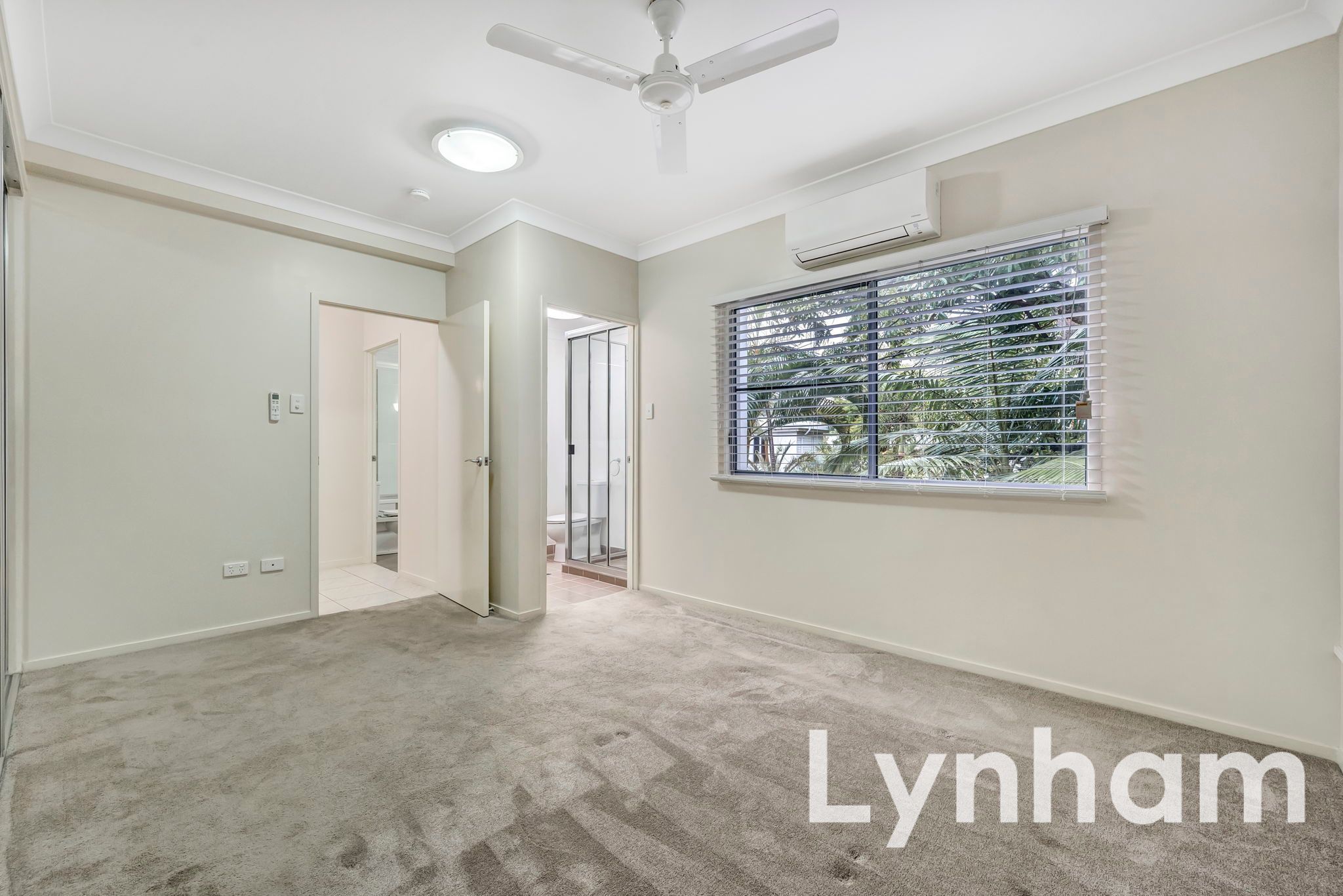 - Master bedroom with built-in wardrobe, private ensuite, and air-conditioning
