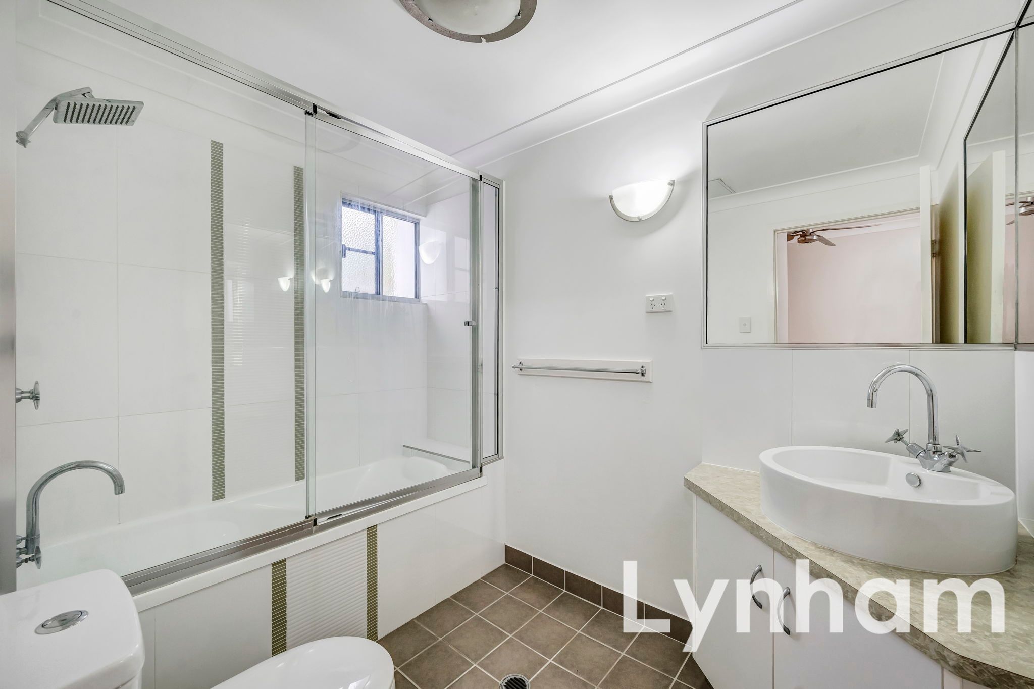 - Main bathroom with shower over bath