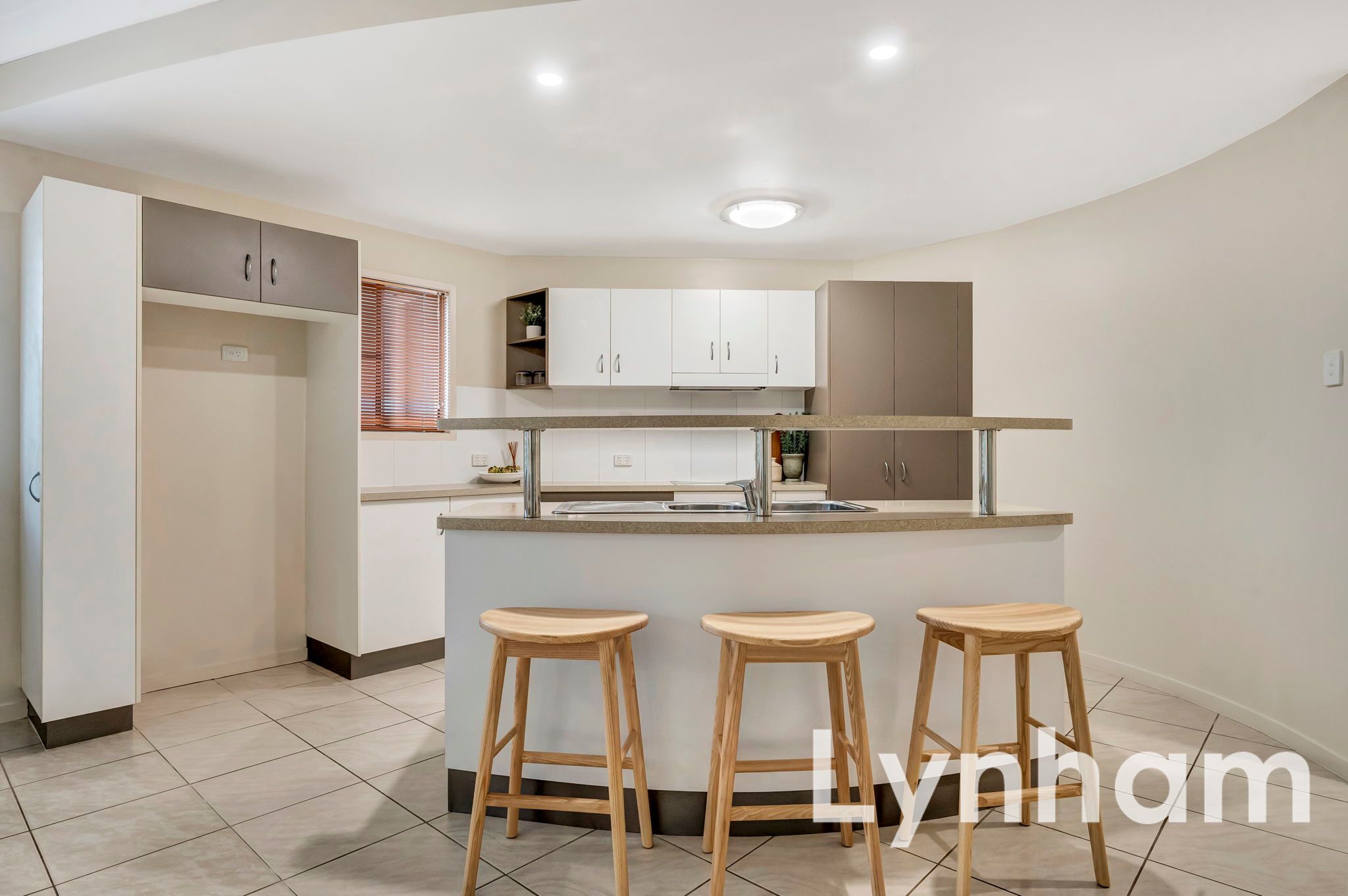 - Contemporary kitchen with ample storage, quality appliances, and stone benchtops