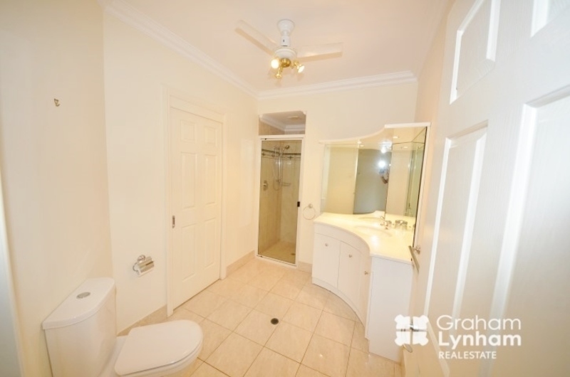 This luxury unit offers 3 bedrooms all with built ins and the main offering a walk in wardrobe and ensuite with a spa bath.