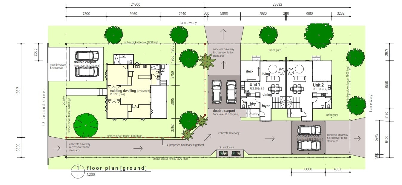 - Concept plans are drawn to meet council DA approval for subdivision of rear allotment