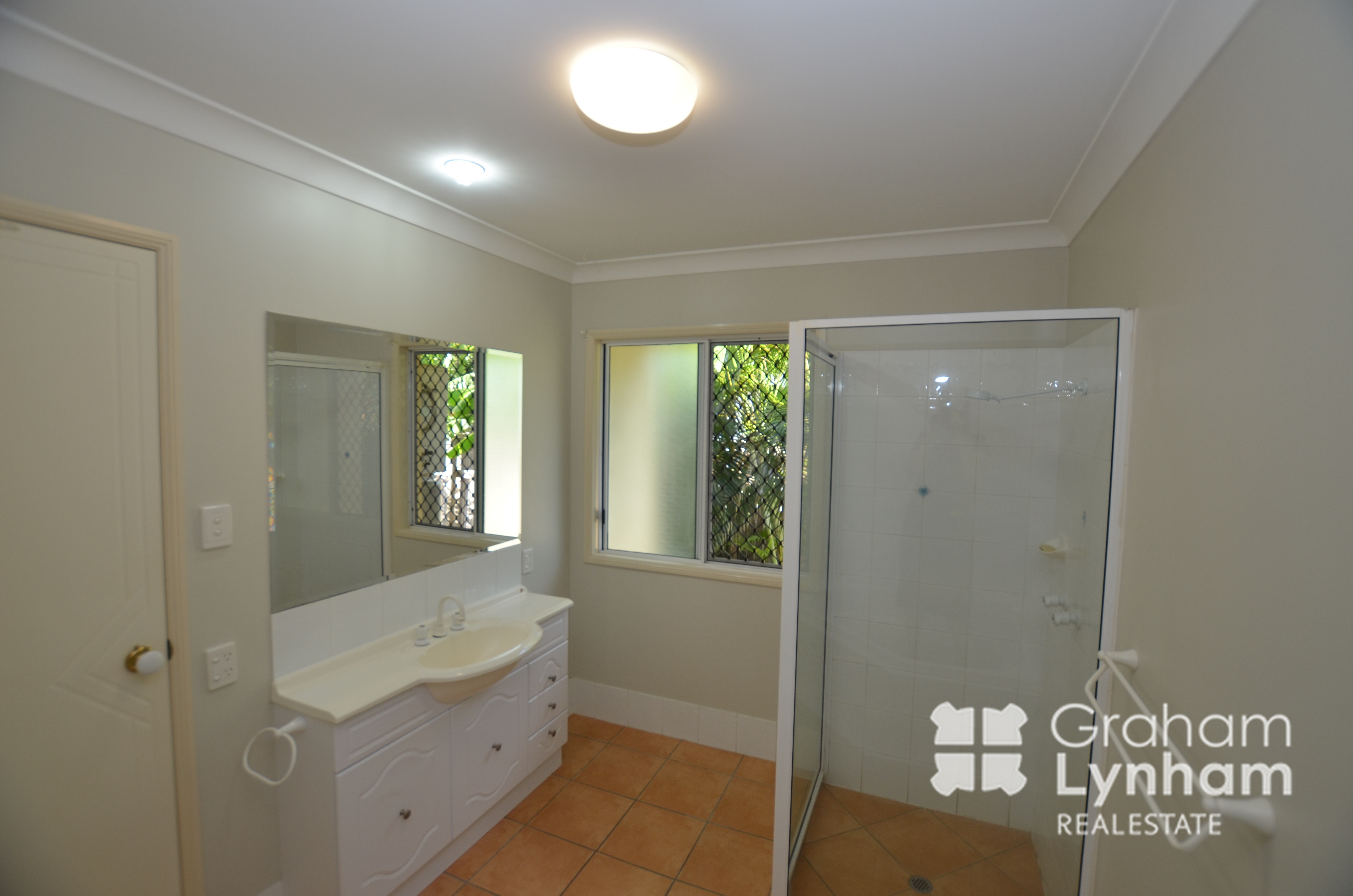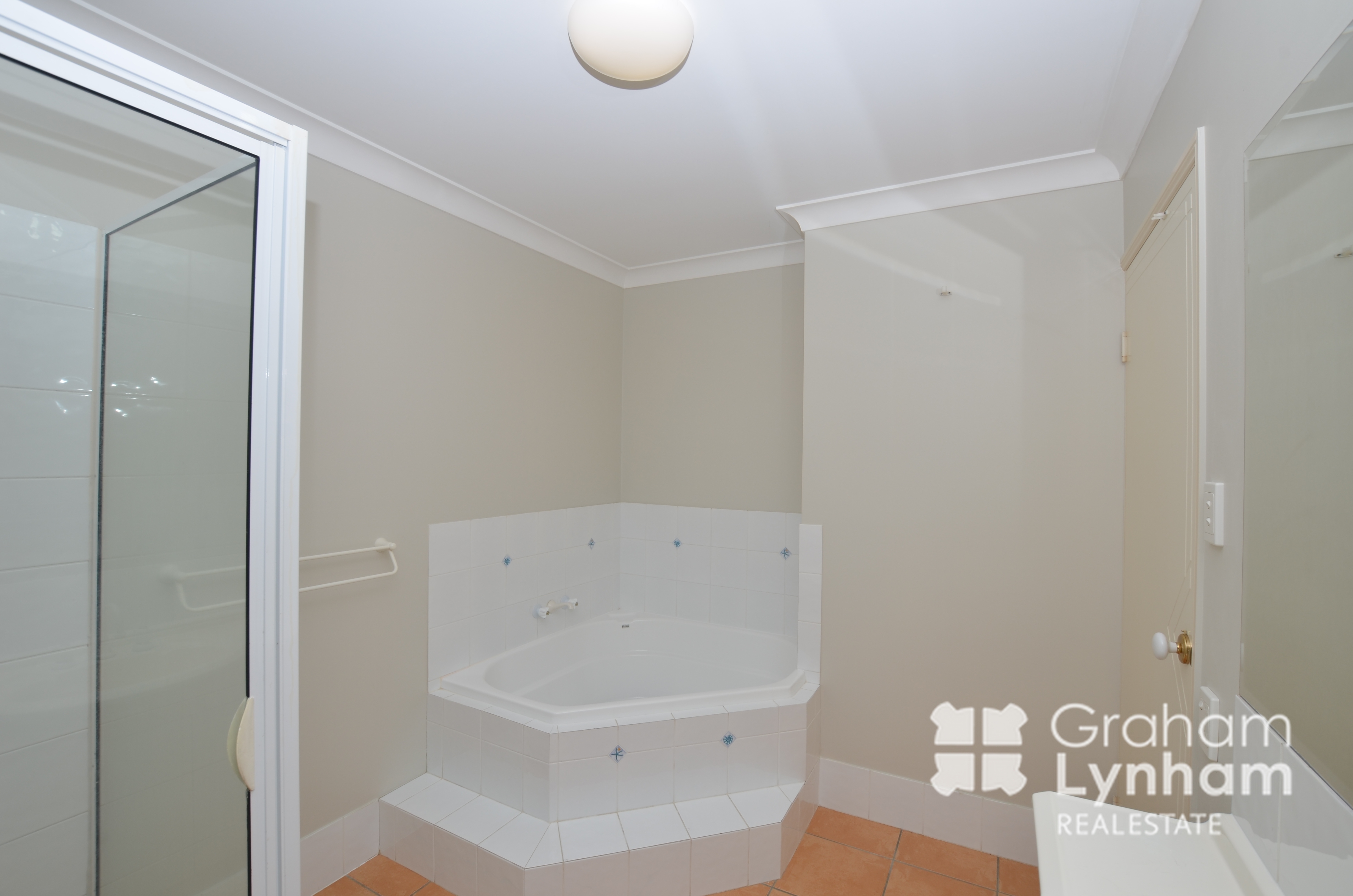 - Large bathroom with separate corner bath and shower
