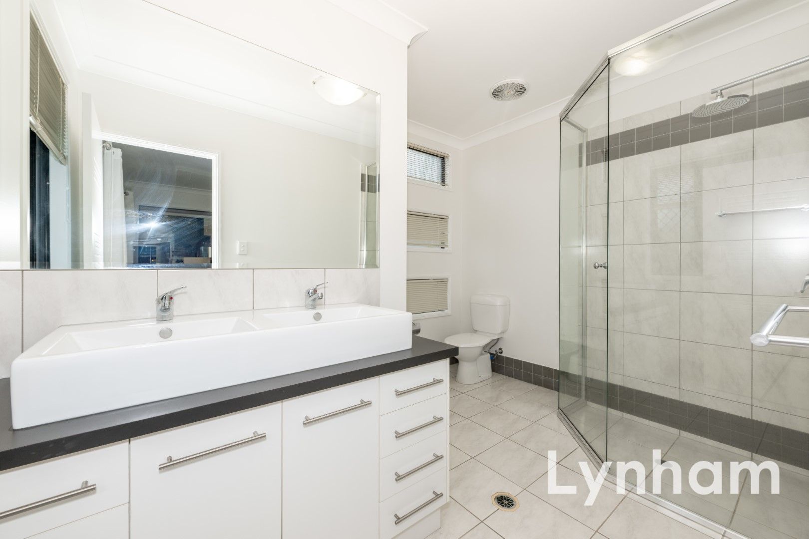 - Ensuite offers a double vanity with a large shower