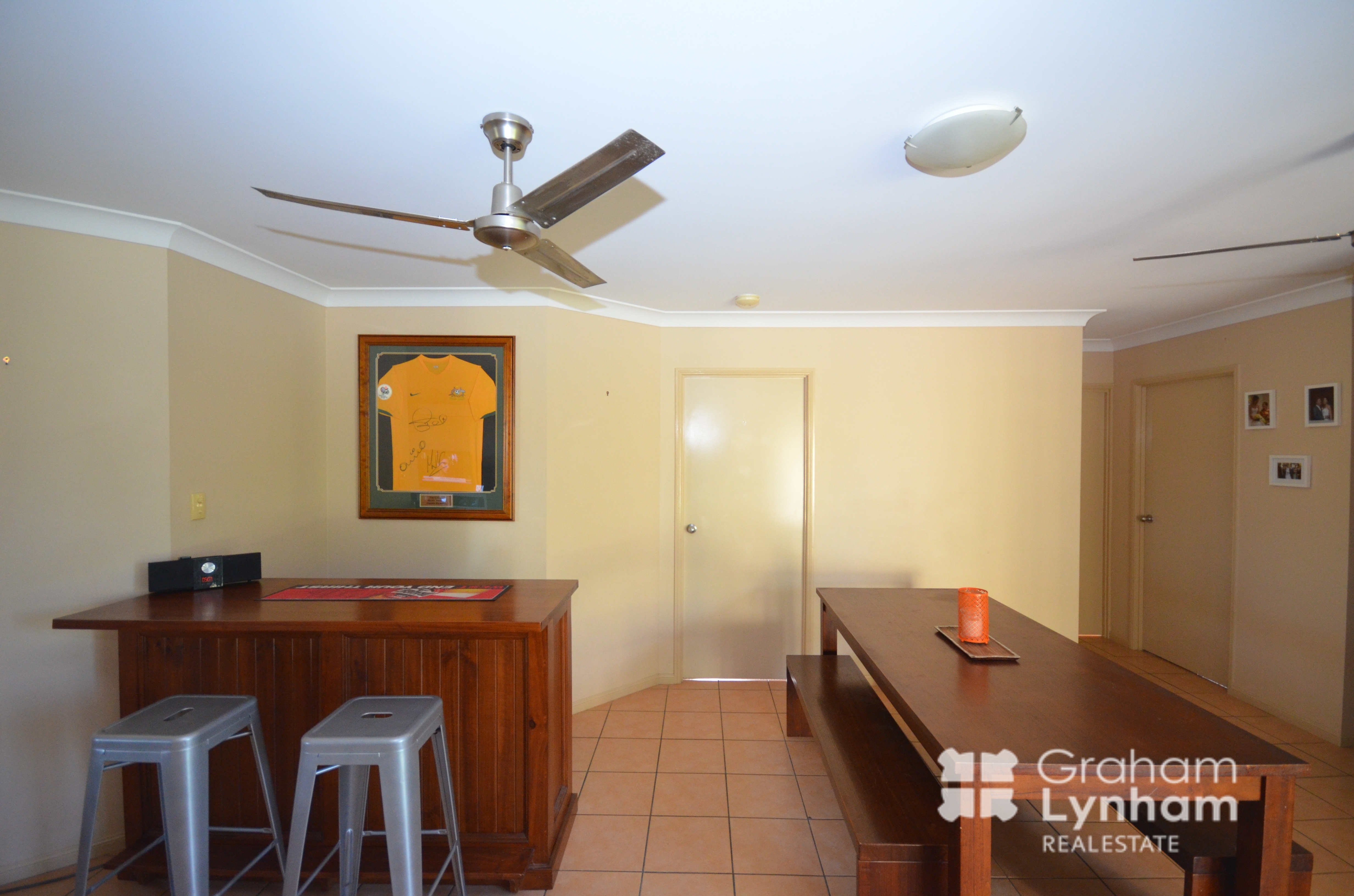 - Open plan tiled living area ( living and dining )